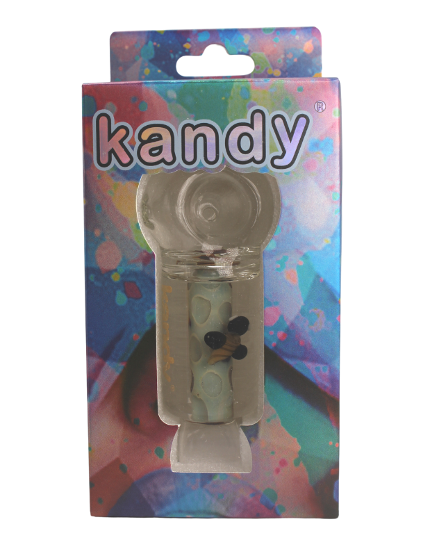 Kandy Glass Hand Pipe 4" W/ Glycerin & Bee In The Middle, & Flat Mouthpiece